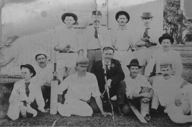 HISTORYBalnarring Cricket Team formed towards the end of the nineteenth century. It was one of the first sports groups in the area and played at the Balnarring Sports Grounds Reserve which had been set aside and surveyed for this purpose. Players here include Perce Berryman (back row 2nd from right), Richard (Dick) Oswin (seated on right), Dave Buckley ( seated far right) John Meehan (centre, dark suit).