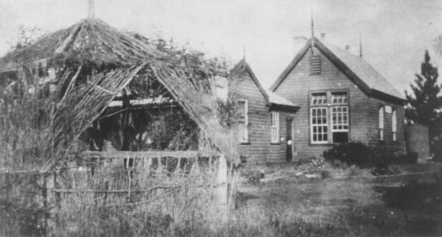 The tea tree ‘summer house’ was built at the ‘bottom’ of the school yard. Boys cut tea tree on the road side when coming to school and dragged it into position to make the walls and roof. It was named ‘Misery Farm’ after a song popular at that time.