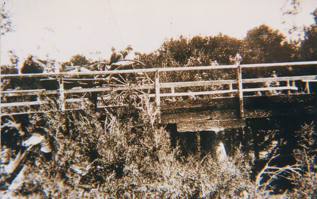 HISTORYBalnarring Beach, 1930. Members of the Stone Family crossing the bridge over Tulum Creek (Merricks Creek).