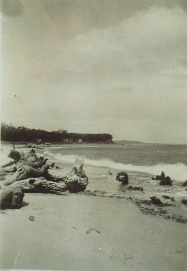 Balnarring Beach 1950s. A beach landmark tree stump.