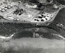 Aerial photo, 1962This aerial photograph shows a town in the top left-hand corner of the image. A coastline can be seen at the top of the image and small and large paddocks cover the remainder of the image along with streets and roads. Camera details appear in white print on a border down the right-hand side. A piece of white paper with the following typed in black is glued to the top: “Photographs from the ...