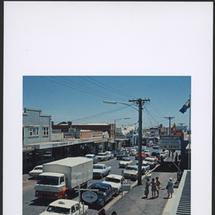 The Esplanade (Beach Road) MorningtonThis shows the Esplanade as an unsealed road. There are power poles on either side of the road. There are some homes, lining the road, and the foreshore is heavily treed.
