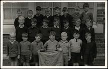 Mornington State School c1962, Grade 5BA group photo of students, Grade 5B 1962. Back row: Christine -, Beverley Pratt, Jan Herbert, Carolyn Walton, Gillian Kuster, Thelma West, Sandra Male, Lydia Wimatal. 2nd back row: Steven Lomas, Peter Whitehead, Peter Scanlon, Susan -, Derek Armstrong, Judith McIlheny, Larry Page, Craig Shaw. 2nd front row: Maurice Foster, Arnold Thompson, Jim Harris, Peter Williams, Eddie -, -, Peter Coyne, Pe...