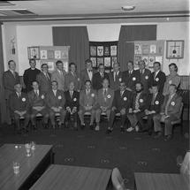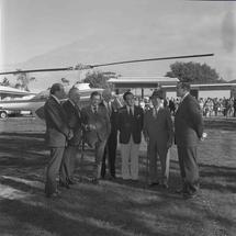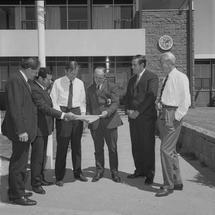 Hastings. Roy Ward, MLA, Counselors Ross Mair, ? , Jack Babbington, Geoff Bennett, Godrey Robinson. inspecting plans.
