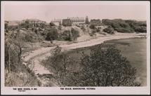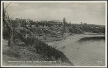 The Beach Road, MorningtonThis photograph shows the two Hotels, Kirkpatrick’s and the Royal Hotel with a house between. Kirkpatrick’s is as it was built a two storey white rendered building, with a pitched slate roof, and with beautiful verandahs around the front and two sides on both levels. There are people shown enjoying a drink on the ground floor under the verandah. To the right of the photo is the Royal Hotel, lo...