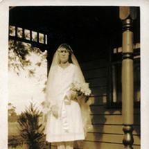 House and family, c. 1910This image shows a family sitting and standing on the verandah of a four posted brick cottage, posing for a photo. They are all very well dressed. The man on the left is holding a baby girl. The woman is sitting on a chair and the man on the right has one foot on a step and the other on the ground. Two windows with lace curtains are on either side of a wooden door.
