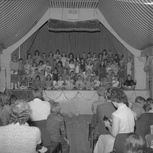 Somers Primary School students at their Christmas Concert in the Somers Education Camp Hall. 1960s 0r 1970s.