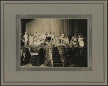Group of people, 17/02/1996These five images show a group of approximately eighteen people enjoying an afternoon tea party underneath the weeping willow trees. The large table is covered with a lace and embroided white tablecloth. The tables are set with cups and saucers, plates and baskets of food. A post and rail fence, buildings, a dog and dog kennel can be seen in the background.