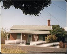 Mornington Pier c1890The image taken from the clifftop looking down over a fishing hut roof towards the pier, a fishing trawler moored alongside the pier