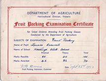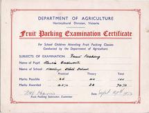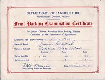 Fruit packing examination certificate 1953