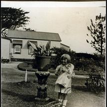 Old Butter Factory , Derril Road, 1960’sExternal view of the rear of a weathered wooden house with a corrugated iron roof which is single pitched. A red brick chimney extends from the top of the roof. The building is surrounded by yellowed grass and a few trees in the background. An old shelter shed is also featured in the background.